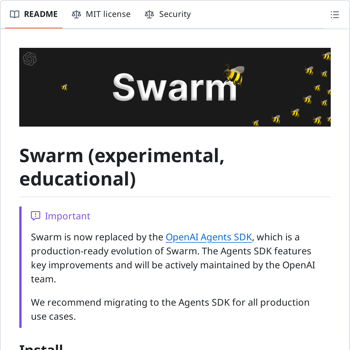 Swarm 是 OpenAI 开源的轻量级 Agent 编排框架,设计上参考 OpenAI Cookbook 中的理念,保持接⼝的轻量化与模块化。该框架可以处理复杂的 Agent 关系和⼯具调⽤,灵活应对多种任务场景,包括 Agent 之间互相传递任务。Koala 认为:虽然社区中早已有⼤量 AI Agent 编排框架的⽅案,但作为可能是最懂 LLM 的研发团队,OpenAI 的框/1 3架⼀经发布还是获得了许多关注。不过 OpenAI 团队也指出,该框架更多是为了学习⽬的⽽开发,帮助开发者理解 Agent 编排的概念,在⽣产使⽤上并不推荐。
