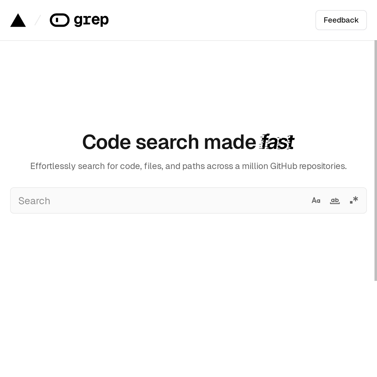 grep app 是⼀个极简⻛格的代码搜索平台,⽬前⽀持搜索 Github 中超过 50 万个公开的仓库。从测试效果看,grep app 的搜索速度极快,并且⽀持正则表达式等⾼级搜索能⼒,⽬前⽹站中还没有更多信息介绍这个项⽬的由来。