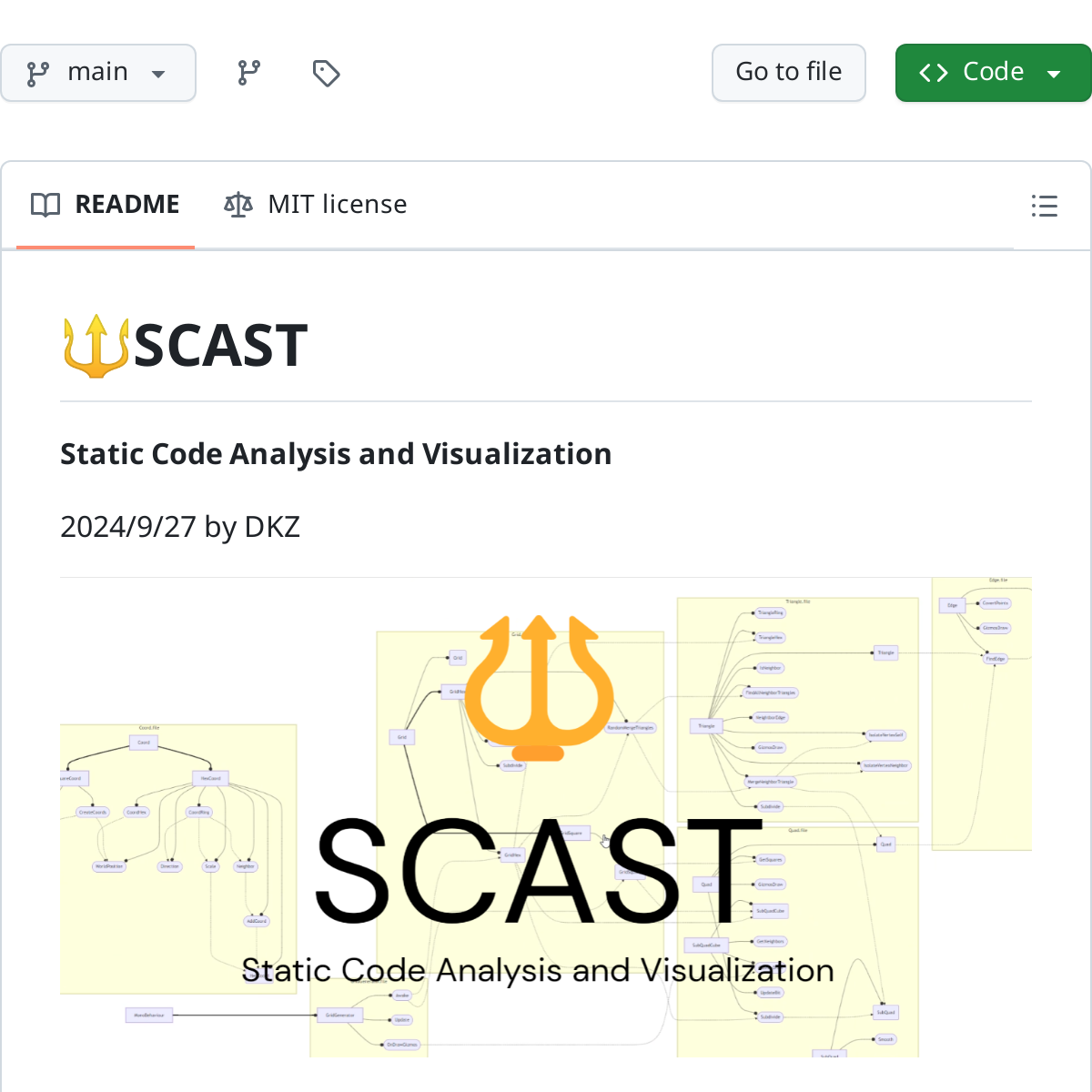 SCAST 可以将代码转换为Mermaid或D3图表, 可用作整理流程架构,输出文档图表, 研究学习代码结构. 可结合Ollama AI解释代码功能, 可作为MCP Server 接入AI客户端为AI提供精确的代码RAG检索功能。 在线尝试: https://davidkingzyb.github.io/scast/SCAST.html