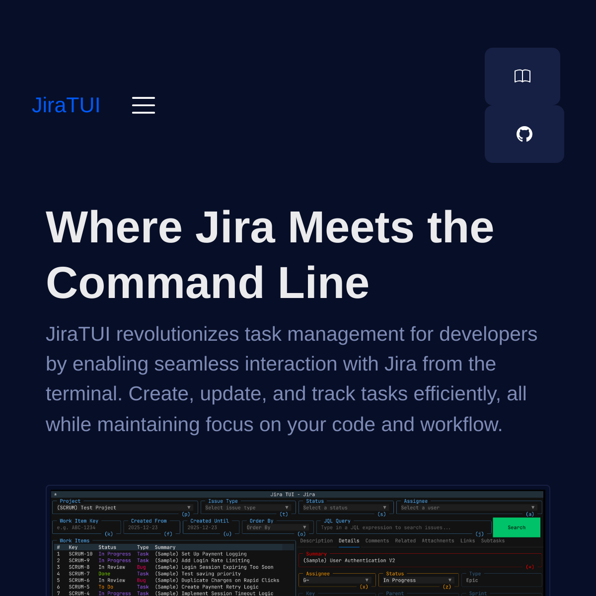 JiraTUI 是一个专门为开发者设计的 Jira 命令行客户端,帮助用户在不离开终端的情况下完成任务管理工作。它支持任务的创建、更新、搜索,以及评论管理和任务关联等核心功能,还支持JQL查询语言进行高级搜索。 从功能完整度来看,JiraTUI涵盖了日常任务管理的主要场景。可配置性也是其亮点,用户可以根据个人习惯定制快捷键和界面布局。
