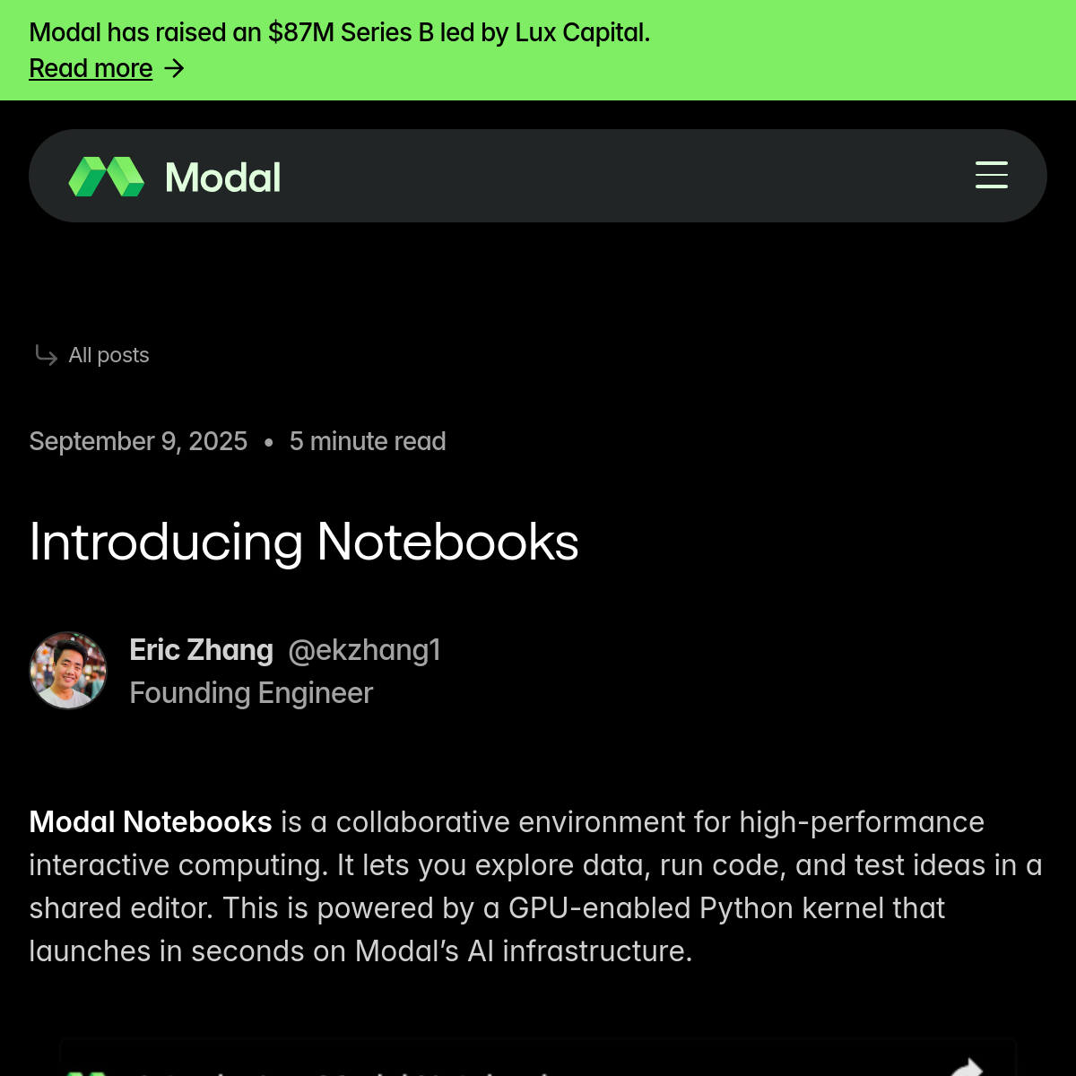 Modal 推出的 Notebooks 是面向 AI 研发的云端协作环境。与传统 Notebook 服务相比,它的核心优势是启动速度,冷启动到可用状态仅需五秒,支持最高 256 核 CPU 和八块 H100 显卡的配置切换。内核会自动闲置和恢复,避免资源浪费。支持多人实时协作编辑,集成 Pyright 语言服务器和 AI 代码补全。