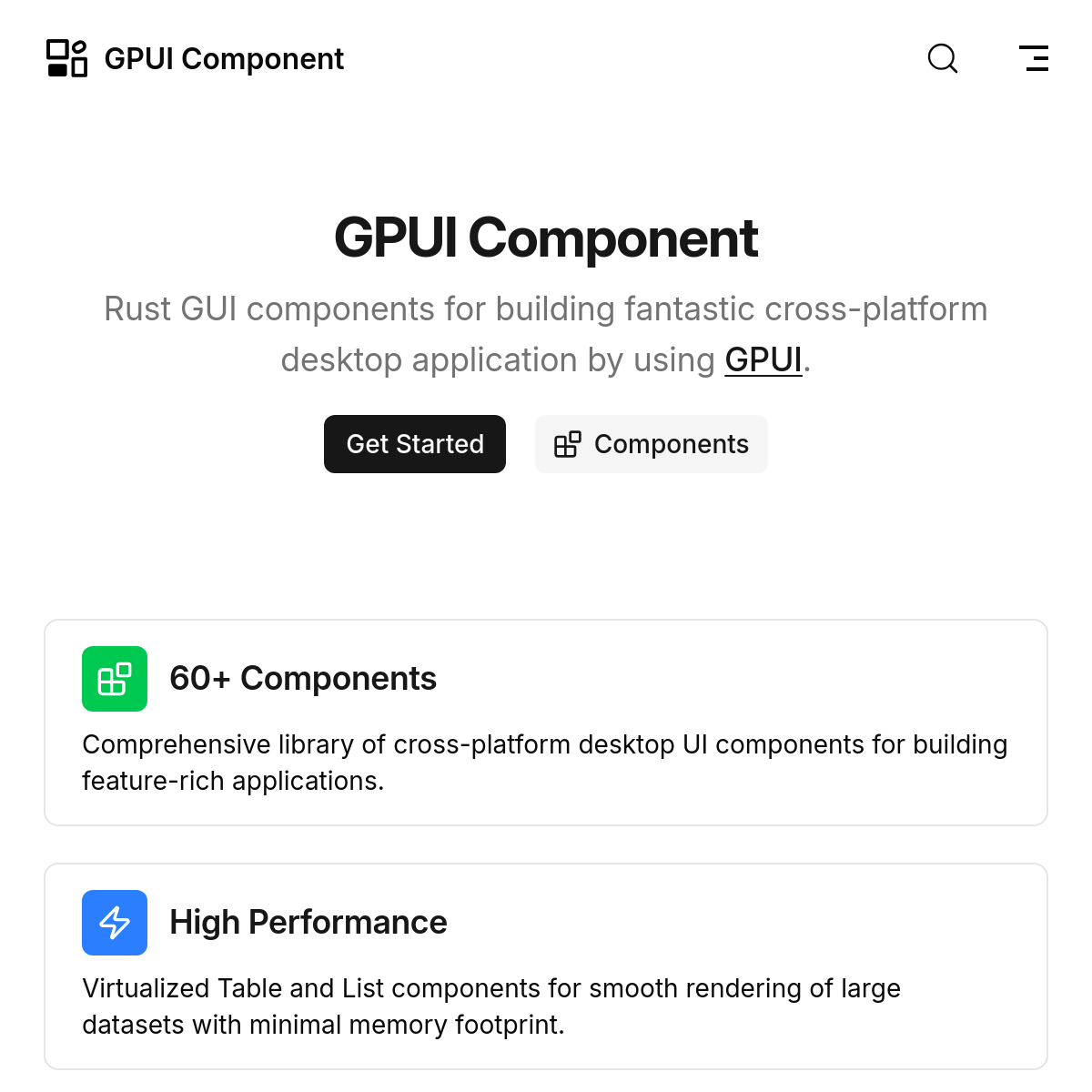 GPUI Component 是 Longbridge 开源的基于 GPUI 框架的 Rust UI 组件库,采用无状态组件设计模式。从示例代码来看,组件API相当简洁,几行代码就能搭建出基础界面。GPUI 本身是 zed 代码编辑器团队开发的高性能 Rust 原生 UI 框架,这个组件库为它补充了开箱即用的UI组件,增强外部开发者基于 GPUI 开发桌面端应用的能力。 点评:从 zed 的表现来看,GPUI 在性能方面确实有独到之处,更多的 UI 组件也让 GPUI 的上手难度大大降低。