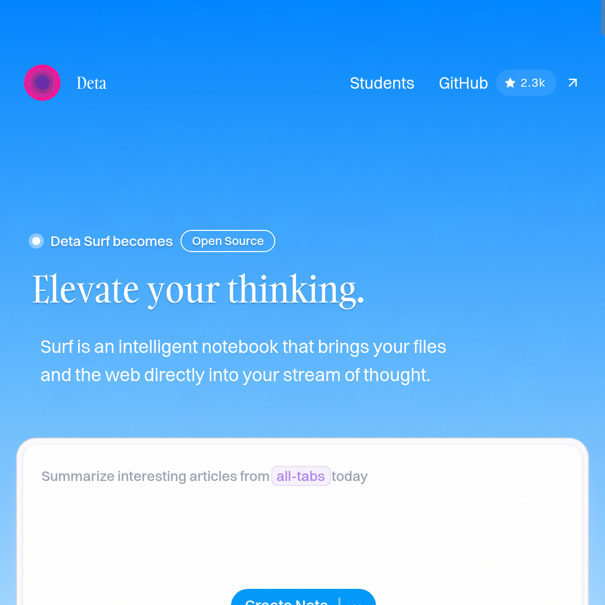Deta Surf 定位是一个集成式笔记工具,允许用户在笔记内直接浏览网页、YouTube 视频和 PDF 文档,并且可以对这些内容提问获取答案。它的核心卖点是减少上下文切换,让信息检索和笔记记录在同一个界面完成。 点评:这类工具的关键在于检索质量和使用流畅度,如果 AI 问答的准确性不够,反而会增加认知负担。目前官网信息较少,实际体验有待验证。