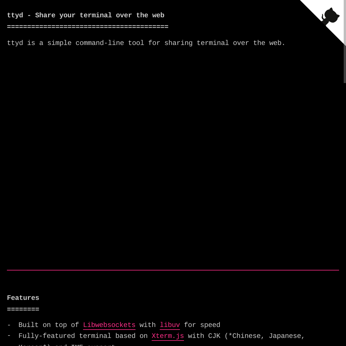 想不想直接在浏览器里远程访问你的终端?ttyd 就能帮你实现。它是一个命令行小工具,能让你通过网页分享终端中正在进行的会话。该项目基于 Libwebsockets 和 Xterm.js 实现,速度快,功能全,还支持中文、日文、韩文等字符显示。你可以用它来运行任何自定义命令,设置用户验证,甚至还能通过浏览器上传下载文件。安装也很简单,macOS 可以直接用 Homebrew,Linux 也有二进制版本和源码编译方式。