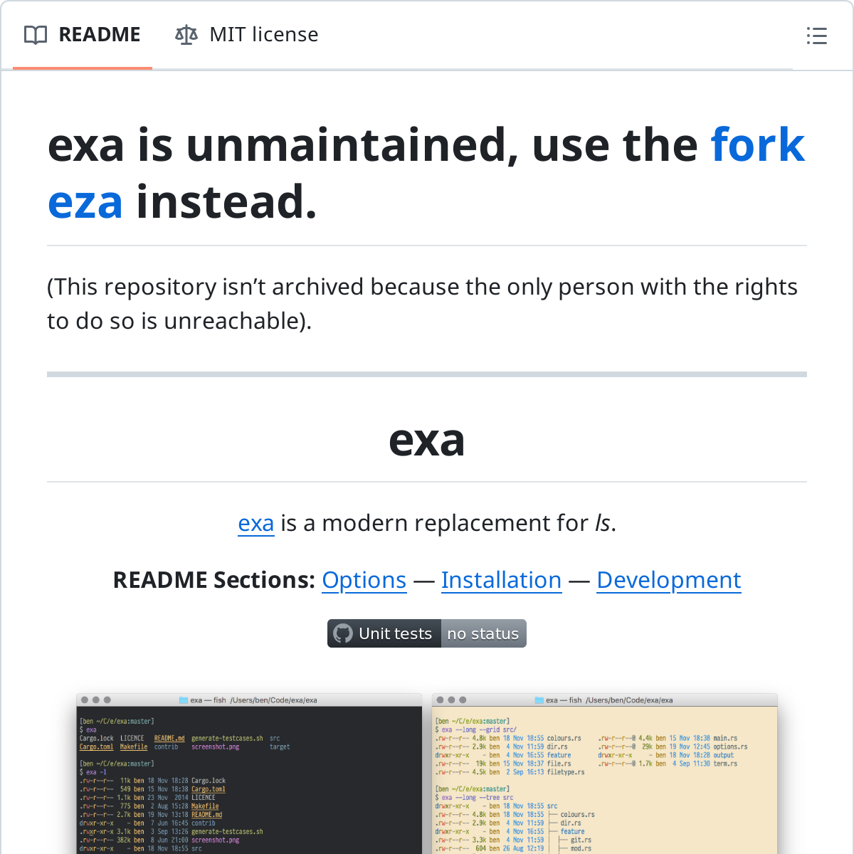 Ls 可能是程序员在 Linux 系统下使⽤最多的命令之⼀,exa 就是 Ls 的开源加强版,它能 更智能地 识别⽂件,并且 将内容漂亮地打印出来。它的功能包括 彩⾊输出、树状视图、⽀持 Git、以及宽屏显示等。除了功能之外,它也代表了⼀种⽤ Rust 去重写各类基础⼯具的流⾏趋势。