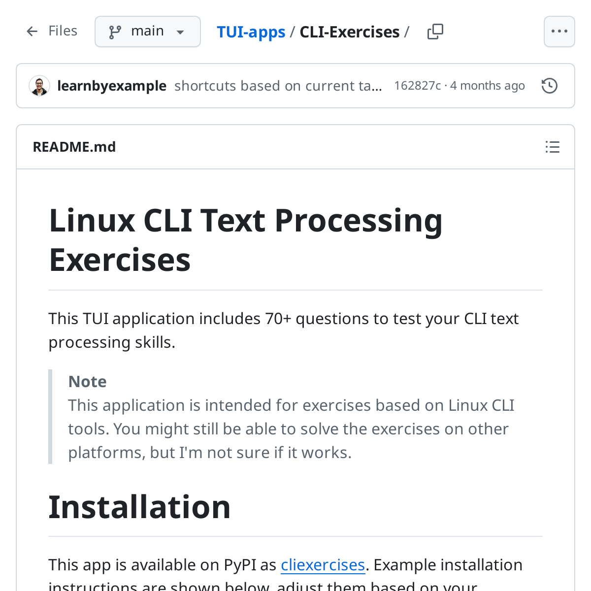 https://github.com/learnbyexample/TUI-apps/tree/main/CLI-Exercises