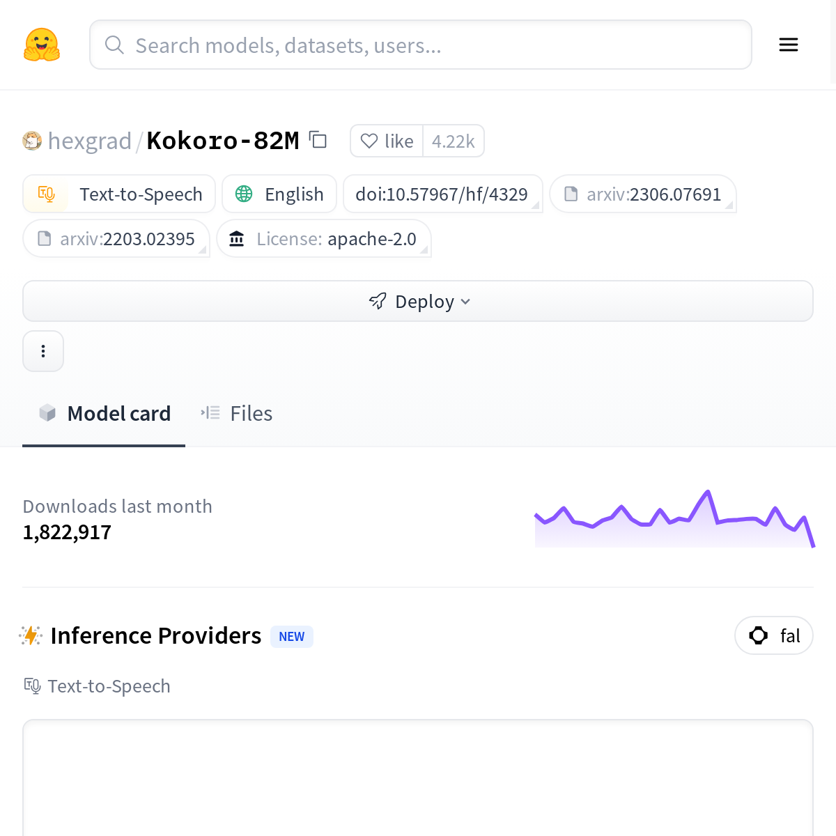 Kokoro 是一个先进的的文本转语音模型,仅有 8200 万参数,却在 TTS Spaces Arena 中排名第一。它使用不到 100 小时的音频数据进行训练,性能却超越了参数更多、数据量更大的模型。Kokoro 的 v0.19 版本已在 Apache 2.0 许可下发布,支持美式英语和英式英语,并提供了多个语音包。