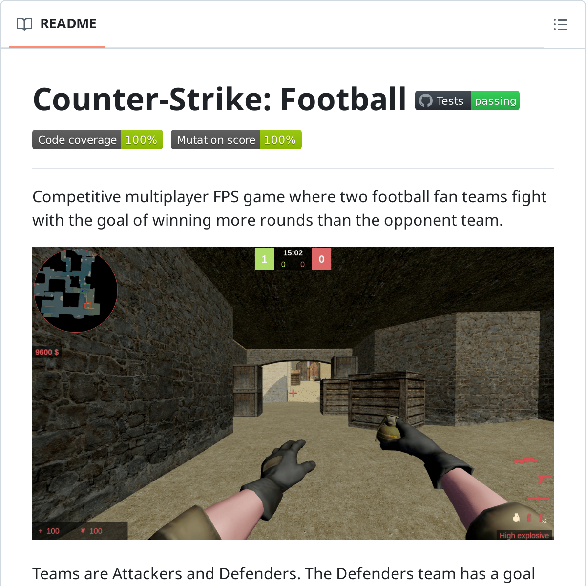 Counter-Strike: Football 是一款融合足球元素的多人射击游戏,玩家分为攻击方和防守方。防守方的任务是守护自己球迷的圣地,阻止攻击方使用“涂鸦炸弹”来达成目标。攻击方需要通过消灭所有防守者或成功放置炸弹来赢得回合,而防守方则需在回合时间内存活、拆除炸弹或消灭攻击方来保住胜利。Koala 认为:作为游戏玩家,如今能够从开源社区中看到基于 HTML、JS 和 PHP 的经典 CS 游戏复刻,也是一种有趣的体验。