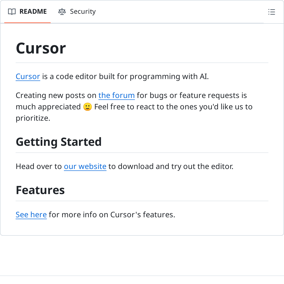 代码生成已经成为了 AI 的重要应用场景,Cursor 这个项目则是将 AI 代码生成与开发者最重要的工具编辑器进行了集成。尽管项目发布时间不长,但它已经能够在代码编辑器内与 AI 结对完成代码编写、编辑、理解代码等工作。项目起初是以商业化产品的形式推出,但或许是因为 AI 领域竞争激烈,目前 Cursor 已经在 GitHub 中开源了对应的代码实现,也收到了不少反馈。