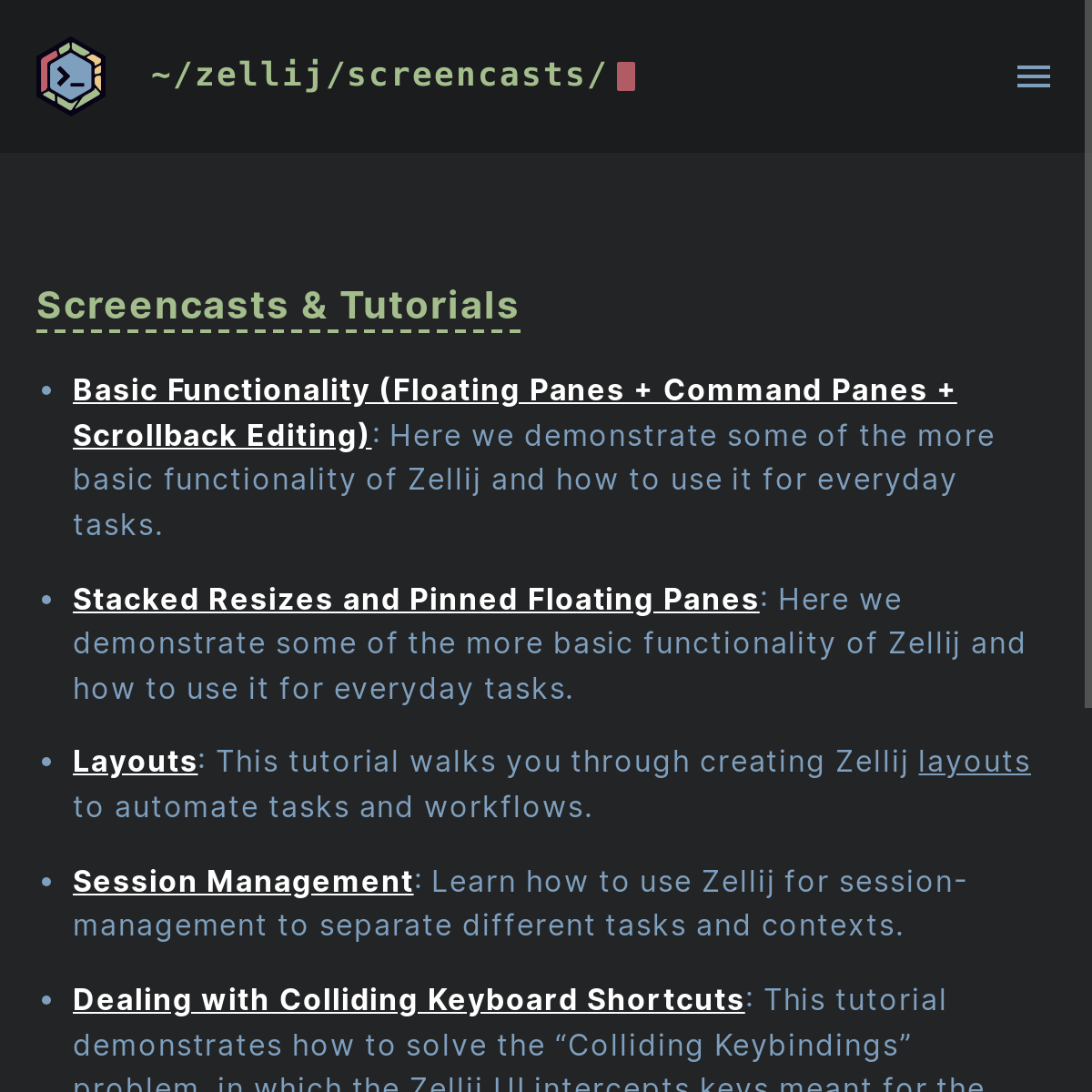 Zellij 是一个终端工作区。它具有类似于 tmux 或 screen 的终端多路复用器的基本功能,但包含了许多内置功能,允许用户扩展它并创建自己的个性化环境。Zellij 包括一个布局引擎,允许用户在配置文件中定义面板映射,灵活布局。同时它也支持使用 Webassembly 和 WASI 来加载面板插件,进一步提升用户在终端的工作效率。