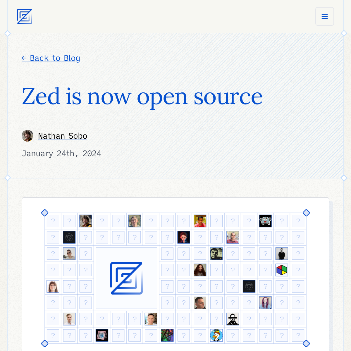 之前我们曾经介绍过专注于性能与极简设计的代码编辑器 Zed,本周该项目正式转为开源形式维护。开发团队表示开源可以让 Zed 连接更广大的开发者社区,获得更多的贡献和支持,最终建立一个更加优秀和流行的代码编辑器。与此同时,他们也同步推出了名为 Zed Channels 的实时协同编辑功能。Zed 的商业计划是面向企业用户提供增值服务,而不是简单地销售编辑器软件。所以,团队认为开源对他们的商业模式不会有太大冲击。
