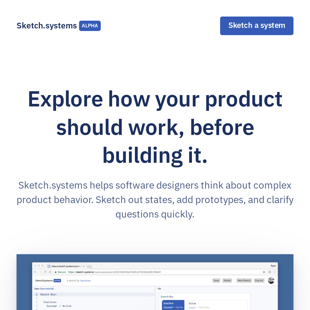 将 UI 设计与代码相结合的原型⼯具是连接设计师与开发者的桥梁,Sketch Systems 是这⼀领域的⼜⼀创新应⽤。该项⽬希望帮助设计师思考复杂产品⾏为的定义⽅式,通过类似 markdown 的语法描述状态机,再编写少量代码即可制成产品原型,并包含⼀个可视化的实时状态机展示。官⽹中也包含了例如复杂表格、地图搜索等复杂场景的原型示例,帮助使⽤者判断/这是否是他们需要的⼯具。