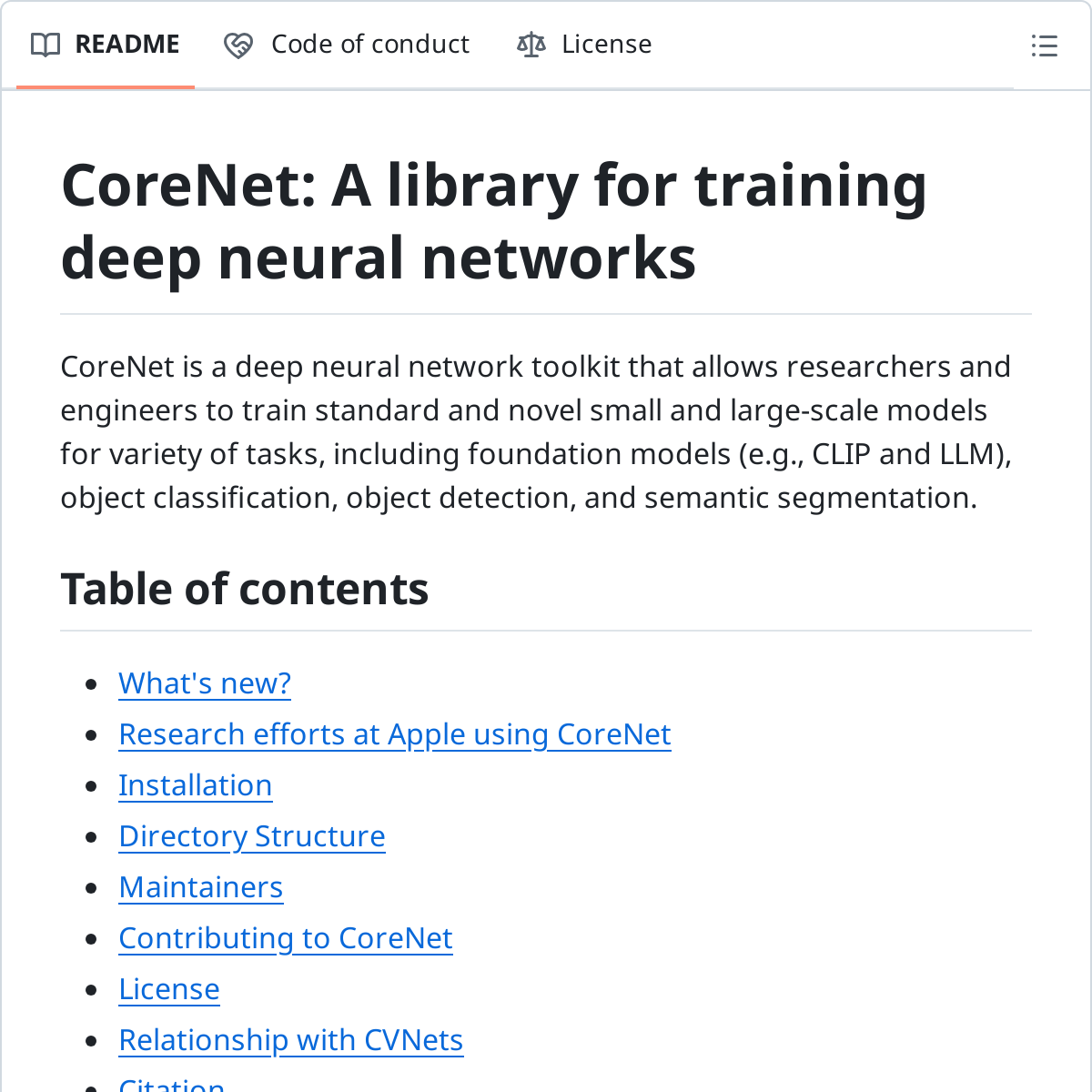 https://github.com/apple/corenet