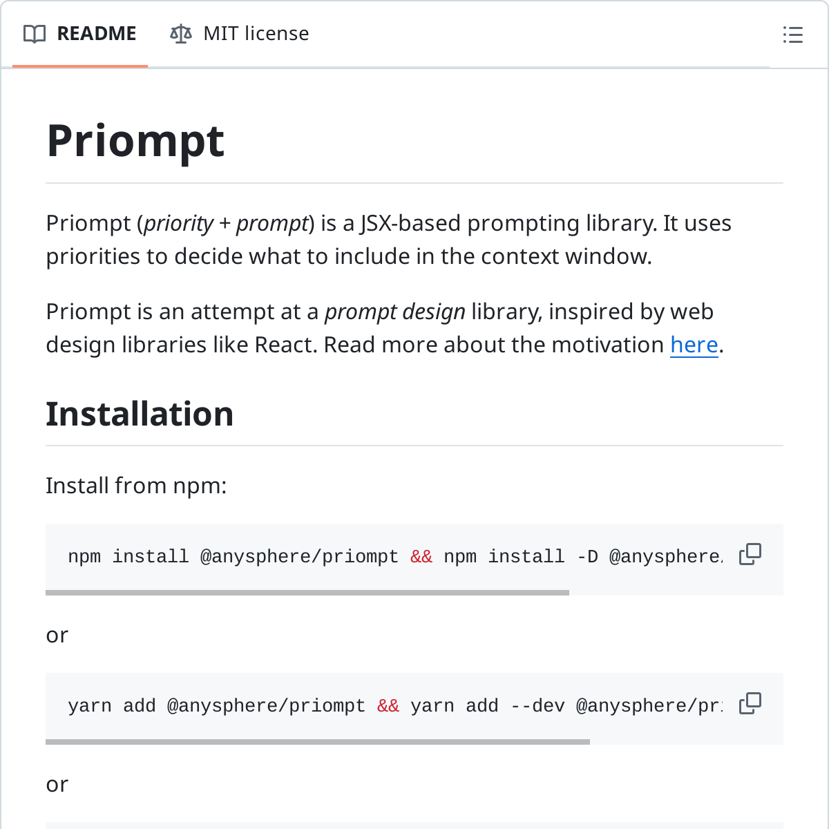 https://github.com/anysphere/priompt/