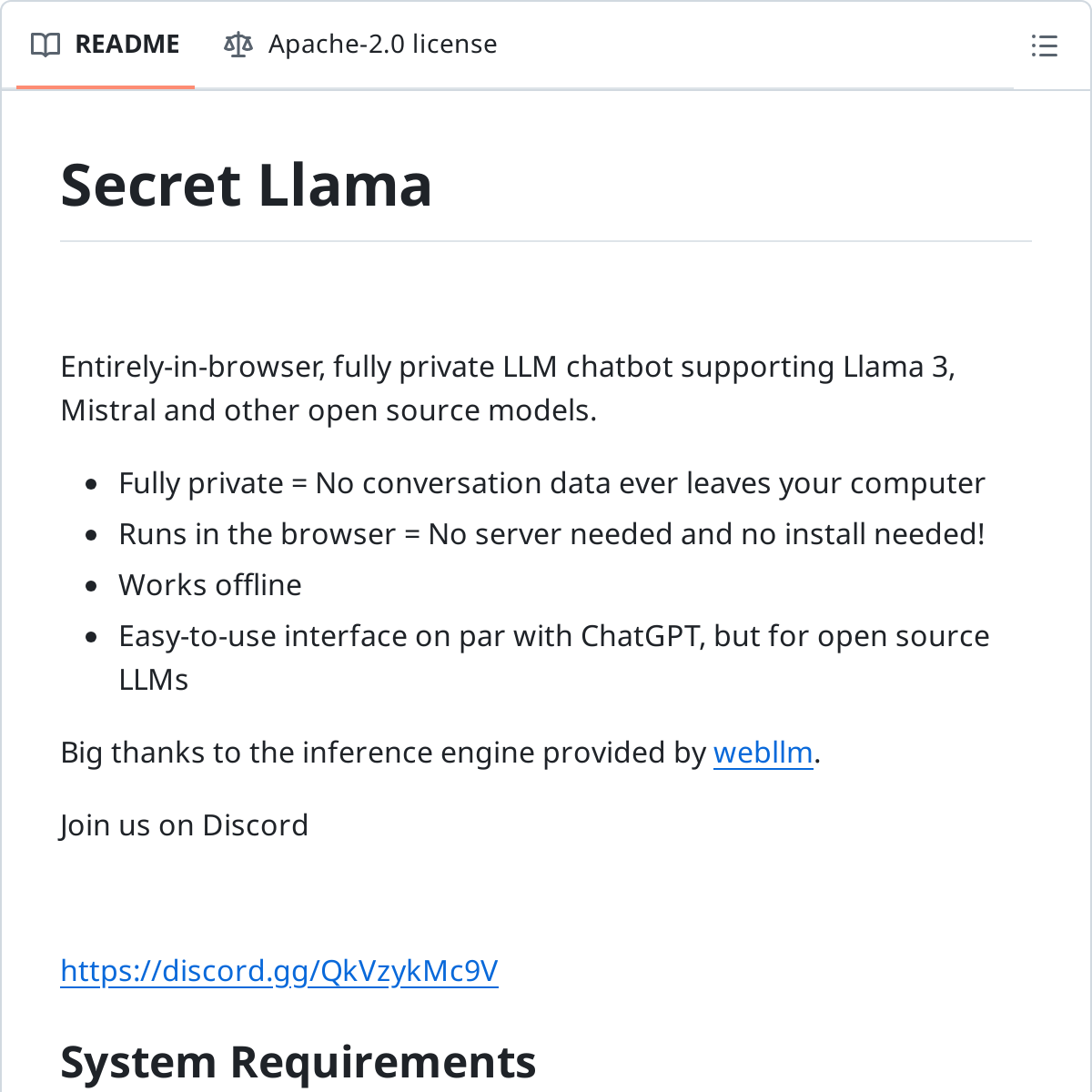 浏览器中的 WebGPU 已经较为成熟,secret-llama 这个项⽬则将 Mistral 和 LLama3等最先进的⼤语⾔模型通过 WebGPU 搬进了浏览器。同样使⽤⼀个对话式 UI,但通过13WebGPU 的能⼒调⽤本地运⾏的⼤模型,可以保证对话内容完全本地化,最⼤程度保证隐私,即使是离线环境下也可以运⾏。Koala 认为:该项⽬⽬前⽀持 Mistral 7B 和Llama 3 8B 等 4 种模型,模型尺⼨从 600MB 到 4.3GB 不等,同时对 GPU 也有较⾼的要求。虽然从模型尺⼨和硬件需求上看实⽤意义还不⼤,但可以作为学习 WebGPU的实验性项⽬进⾏了解。
