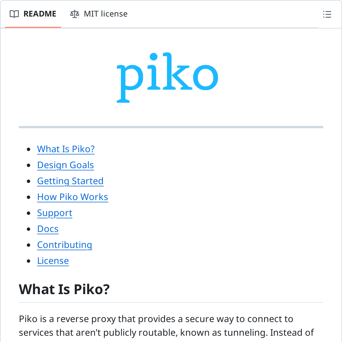 Piko 是⼀款开源的 Ngrok 替代品,可以实现将本地开发环境暴露到公⽹和内⽹穿透的功能。Piko ⽀持以集群形式运⾏,实现故障容错、⽔平扩展和零停机部署。在设计⽬标上,Piko 也专注于服务⽣产流量,⽀持访问客户⽹络、构建⾃带云服务以及连接物联⽹设备等场景。它构建于 Kubernetes 之上,可作为 StatefulSet 在负载均衡器或Kubernetes Gateway 后部署。Koala 认为:Ngrok 等产品不论是在开发测试还是提升安全性⽅⾯都很有价值,但不⽀持⾃部署⼤⼤限制了其使⽤场景。Piko 以开源且⽀持⾃部署的模式提供,很好的补⻬了这⼀领域的缺失,且其设计注重⼤规模部署和⽣产稳定性,也将帮助他们获得更多⽤户。