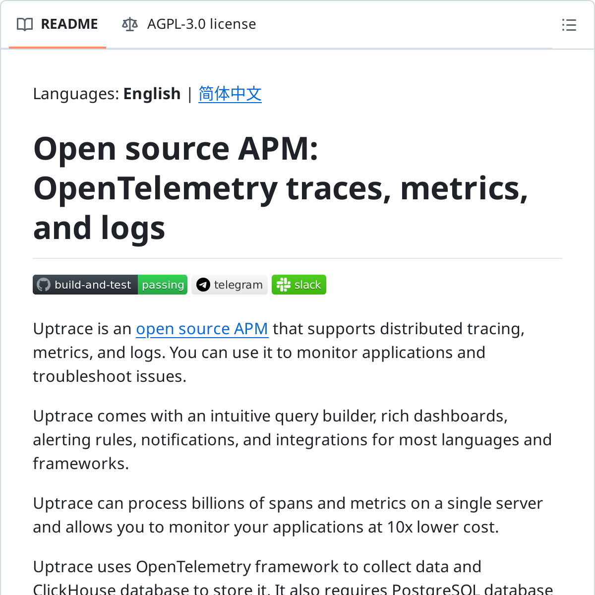 https://github.com/uptrace/uptrace