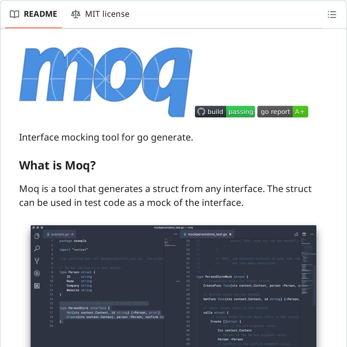 Moq 是⼀个为 Go 语⾔开发的 interface mock ⼯具,通过 go generate 命令运⾏Moq,你可以轻松⽣成 interface 的 mock 结构体,这些结构体可以在测试代码中使⽤,帮助你在单元测试中模拟 interface ⾏为。Moq 提供了多种选项,⽀持⾃定义⽣成代码的格式、输出⽂件和包名等。Koala 认为:Moq 是 Go 语⾔社区中常⽤的测试⼯具之⼀,特别适合需要灵活控制接⼝⾏为的场景。它简化了⽣成模拟对象的过程,让开发者专注于编写测试逻辑。灵活使⽤这⼀⼯具,可以让你的单元测试更加健壮且⾼效。